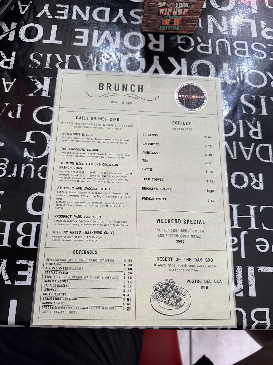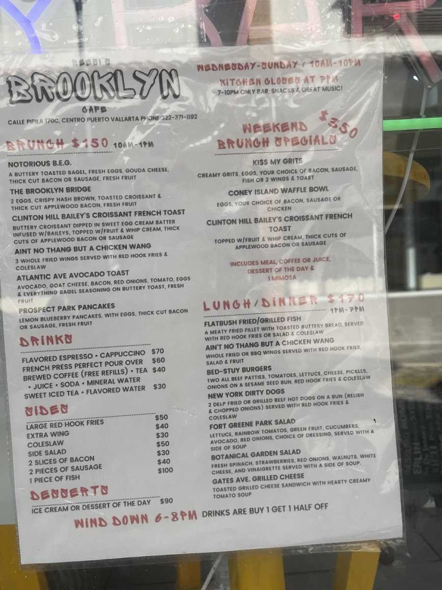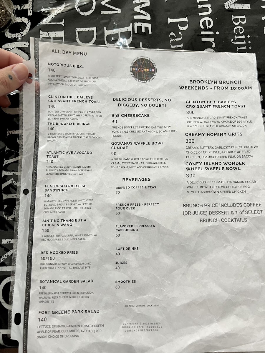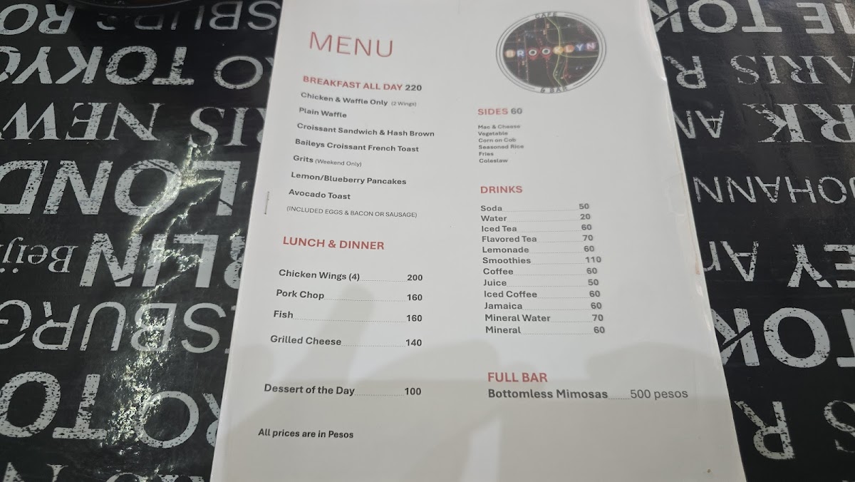 This menu is appropriate for breakfast, brunch, and light meals throughout the day. Visitors can expect a mix of quick orders and more casual sit-down dining experiences, with selections that cater to different tastes including meat, seafood, and vegetarian preferences.